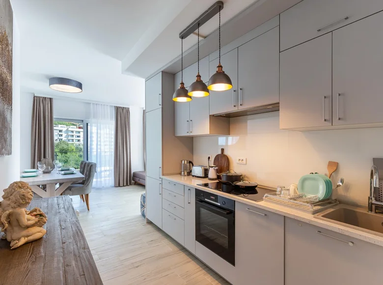 Oferujemy na sprzedaż w pełni umeblowany luksusowy apartament o powierzchni 66 m2, położony w prestiżowym kompleksie mieszkalnym w Becici, zaledwie kilka minut spacerem od plaży.