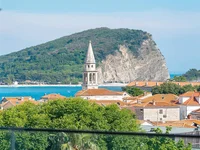 This apartment is located on the 4th level of the building and features views of Budva Old Town and the open sea. At the back, the apartment has views of the mountains too. The apartment is furnished in a contemporary style. The open-plan layout and large windows give a feeling of space and light. The apartment is 74m2 in size.
