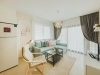 Nowoczesny kompleks wieżowców otoczony kwitnącymi ogrodami i drzewami