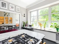 Wejście do budynku i klatka schodowa są oświetlone naturalnym światłem i wyłożone starym, odrestaurowanym Lapis lazuli.
