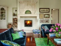 Salon na drugim piętrze o wysokości 3,7 m ma stary, oryginalny francuski kominek z 1805 roku, pięknie płonący, wykonany z wapienia przywiezionego z francuskiego zamku.