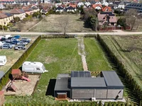 Na działce znajduje się dom modułowy o powierzchni 30 m², składający się z salonu z aneksem kuchennym, sypialni, pokoju dziecięcego oraz łazienki z prysznicem (ciepła woda z bojlera).