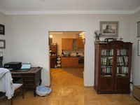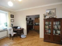 Salon 20,81 m2 z niezależnym wejściem, połączony prześwitem z kuchnią 16,09 m2 z oknami na ulicę, łazienka 5,37, przedpokój 10,97 (szafy wnękowe).