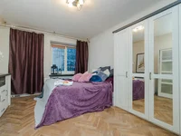 Mieszkanie zlokalizowane na wysokim parterze 3-piętrowego budynku z cegły, odnowionego w 1951 roku, oferuje nowoczesne udogodnienia, w tym nowe drewniane okna z dwustronną ekspozycją na osiedle.