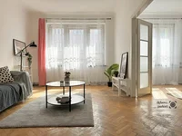 Mieszkanie położone niedaleko skrzyżowania ulic Frankushka i Pobediteley znajduje się na pierwszym piętrze apartamentowca z 1933 roku. W mieszkaniu zachował się piękny oryginalny parkiet, który można przeszlifować. Opcje układu obejmują trzy pokoje w dobudówce, dwa pokoje z oddzielną kuchnią lub duży salon z oddzielną kuchnią.