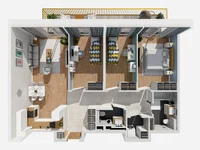 The innovative Appartme home automation system will be standard in each apartment. The smart system will control the temperature, turn off the water supply in the absence of the owners, turn off the power supply to the sockets if necessary, and turn off the lights in all rooms after leaving the apartment.