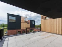 Do mieszkania przynależą dwa tarasy wykończone płytami ceramicznymi. Większy, na pierwszym piętrze, dostępny z salonu o powierzchni ponad 32 m2 oraz mniejszy, na drugim piętrze o powierzchni ponad 18 m2.