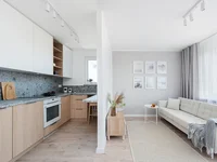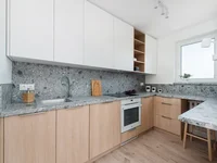 The apartment is located on the 9th floor of a 10-story building from 1976. The area of 49.8 m2 consists of a living room with a partially separated open kitchen, two bedrooms, a bathroom and a hall. The apartment also includes a large balcony and a basement. Eastern exposure. The apartment is equipped, furnished and ready to move in. An ideal place to live for a family