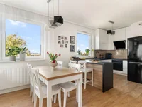 Z salonu wyjście na balkon z widokiem na cichą okolicę. Styl wykończenia: panele winylowe Pergo, meble na wymiar. Dom znajduje się na chronionym, monitorowanym terenie z terenem zielonym i automatycznym podlewaniem.