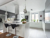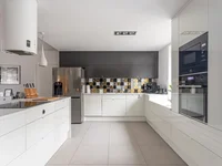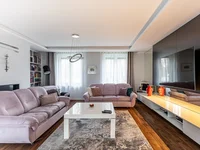 Na parterze znajduje się przestronny salon z kominkiem, kuchnia z jadalnią, toaleta, przedpokój z wyjściem do ogrodu i taras (50 m²) z meblami wypoczynkowymi i huśtawką. Na drugim piętrze znajduje się główna sypialnia z wydzieloną garderobą, pokój dziecięcy z wydzieloną częścią sypialną i garderobą, przestronny gabinet, łazienka z wanną, prysznicem i dwiema umywalkami oraz garderoba z zabudowaną szafą. w pralce. Na dolnym poziomie znajduje się część biurowa, sauna dla 6 osób, prysznic i toaleta, pomieszczenia rekreacyjne z kinem domowym i stołem bilardowym oraz dwa pomieszczenia gospodarcze.