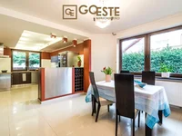 Na parterze i w salonie kąpielowym zastosowano ogrzewanie podłogowe, co zapewnia komfort cieplny w chłodniejsze dni. W salonie i pokojach na piętrze podłogi wykończone są naturalnym drewnem egzotycznym (Merbau), a w kuchni, przedpokoju i łazienkach położono elegancki gres. Dodatkowo dom wyposażony jest w centralny odkurzacz, którego jednostka centralna znajduje się w garażu - jest to praktyczne rozwiązanie, które ułatwia codzienne porządki.