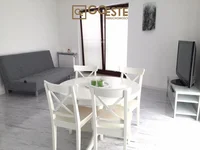 Nowe, w pełni wyposażone i umeblowanie mieszkanie. W kuchni płyta indukcyjna, piekarnik, lodówka z zamrażarką, zmywarka. W salonie znajduje się rozkładana sofa, stół z krzesłami, stolik RTV z telewizorem. W sypialni podwójne łóżko, stoliki nocne oraz pojemna szafa. W łazience wanna, pralka, umywalka, wc. Do dyspozycji balkon, oraz przestronna szafa w przedpokoju.