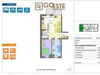 Mieszkanie o powierzchni 59,93 mkw, w którego skład wchodzą: