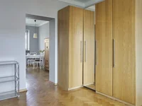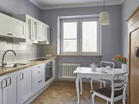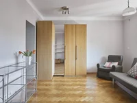 Apartament znajduje się w strzeżonym budynku z zadbanym wewnętrznym ogrodem, dostępnym wyłącznie dla mieszkańców. Budynek z odrestaurowaną fasadą (odnowiony w 2006 r.). Układ mieszkania obejmuje dwa pokoje - 18 m² i 8,5 m², jasną kuchnię o powierzchni 13 m², łazienkę z wanną o powierzchni ok. 3,5 m². Wcześniej kuchnia znajdowała się w małym pomieszczeniu - jest możliwość powrotu do pierwotnego planu. Mieszkanie jest dwustronne, skierowane na południe i północ, wysokość sufitów wynosi ok. 2,8 m. W salonie i kuchni podłoga jest wyłożona parkietem dębowym, a w sypialni parkietem sosnowym. Mieszkanie jest klimatyczne i ma charakter.