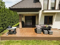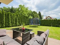 Zadbany ogród z naturalnym żywopłotem (prywatność!), strefa relaksu na tarasie.