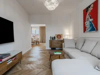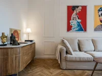 APARTAMENT — LUKSUS W NAJWYŻSZYM WYDANIU Wnętrze zostało zaprojektowane przez architekta, z dbałością o każdy detal. To starannie skomponowana przestrzeń, w której nowoczesna elegancja przenika się z wyrafinowaną estetyką . Aksamitne tkaniny , sztukaterie na ścianach , dekoracyjne oświetlenie, paleta barw obejmująca beże, biel tworzą atmosferę pełną klasy i subtelnego luksusu. Otwarta przestrzeń pomiędzy jadalnia a salonem optycznie powiększa przestrzeń, dodając jej lekkości i charakteru. W zabudowanych szafach wykonanych na wymiar zadbano o maksymalną funkcjonalność i elegancję. Wyjątkowy układ pomieszczeń • jasny, przestronny salon z wykończonym aneksem kuchennym • stylowy salon telewizyjny z panoramicznym widokiem na Plac Kościuszki • cicha sypialnia od strony zielonego podwórza • luksusowa, nowa łazienka wykończona wysokiej klasy materiałami • każde pomieszczenie posiada własne okno, co gwarantuje naturalne światło i komfort Standard wykończenia premium • kuchnia wykonana na zamówienie • markowy sprzęt AGD: lodówka, zmywarka, płyta ceramiczna, pralka • sypialnia w pełnej zabudowie meblowej na zamówienie • apartament po generalnym, kompleksowym remoncie