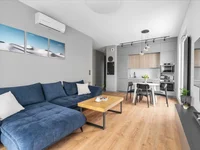 • Przestronny salon z kuchnią połączoną z salonem i wyjściem na duży balkon