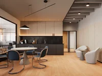 Na parterze znajdują się pomieszczenia do bezpłatnego użytku z panoramicznymi oknami i oddzielnymi grupami wejściowymi.