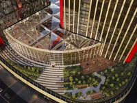 Wyjątkowe elementy konstrukcyjne: własne lobby ze studia Yorgo Lykouria, ponad 5,5 tys. paneli świetlnych, włoskie marmurowe okładziny arabescato i atrium szklane o wysokości ośmiu pięter.