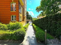 Jedną z głównych zalet klubu jest obecność zamkniętego terytorium wewnętrznego, gdzie można spędzić czas spokojnie, dać dzieciom możliwość gry dla ich przyjemności, bez martwienia się o ich bezpieczeństwo. Dom ma 6 pięter, 12 apartamentów. Podczas budowy wewnętrznych i zewnętrznych ścian zastosowano cegłę ceramiczną, wszystkie elementy dachu, kanalizacji, ochrony przed śniegiem wykonane są z miedzi. W dekoracji hali i wejścia utrzymany jest elegancki styl starego Koenigsberg: kute poręcze, elementy wykonane z naturalnego drewna, płytki ceramiczne. Ozdoba kafelkowa w wejściu do domu jest odtworzona zgodnie ze starymi fotografiami, z zachowanymi wnętrzami domów Koenigsberga, z ceramicznych płytek tej samej marki ZANNA FLIESEN, która została dostarczona mieszkańcom starego miasta w XIX wieku. Drzwi wejściowe do apartamentów w kolorze kości słoniowej są doskonale wpisywane w całym wnętrzu pokoju. Projekt szkicowy domu, projekt wnętrz, obrazy ze zdjęciami starego Koenigsberga na ścianach wejścia został wykonany przez znanego architekta specjalizującego się w renowacji starych fasad i rekonstrukcji wnętrz XIX wieku. Dom wyposażony jest w windę fińskiej firmy Kone, wykonany na zamówienie indywidualne, wyposażony w alarmy przeciwpożarowe, telewizję kablową. Penthouse 270 m2 Wysokość sufitu wynosi 5 m. Panoramiczne szyby wszystkie 1 apartamenty Powierzchnia okna na 4 stronach Większość okien z widokiem na południową stronę Otwarty balkon z widokiem na zielone korony drzewa 4 pokoje 2 strefy kominkowe 2 węzeł sanitarny Obiekt nr 26256-32563.