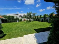 Duża podwórze z stemplowanym betonem, trawą, systemami nawadniania, kroplownikami i zraszaczami, wysokiej jakości importowane rośliny ponad 130 sztuk). Carport dla 4 samochodów (konstrukcji metalowej), powierzchni asfaltowej. Betonowe ogrodzenie wokół całej partii, dwa metry wysokości, bramy (przesuwne) automatyczne.