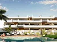 Domy 2 i 3 sypialnie z 2 łazienkami, basen komunalny. Budynek ma 3 piętra, możliwość wyboru parteru z ogrodem, pierwszego piętra z tarasem lub poddasza z solarium.