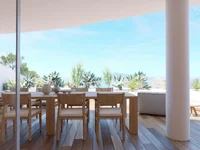The houses have a constructed area from 575m² to 900m², with terraces from 120m² to 300m, They offer unparalleled panoramic views over the Bay of Altea, being able to contemplate the Island of Altea, Altea La Vella, Benidorm, El Albir, etc. Each house has a total of 3 bedrooms, with large, fully-equipped fitted wardrobes and a spacious bathroom for exclusive use, with a shower and a free-standing bathtub. The main bedroom of approximately 51 m² has a spacious dressing room and an en-suite bathroom, also with a shower and bathtub. The 3 bedrooms have direct access to the terrace and enjoy fantastic sea views. Both the two bathrooms in the bedroom area, as well as the courtesy toilet, are equipped with sanitation from the Duravit firm, Hansgrohe taps, coverings from the Italian firm Trend and Corian® countertops.