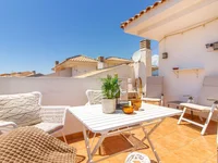 This exclusive apartment is centrally located in Albir - within walking distance to all necessary amenities, such as supermarkets, restaurants, and not least, the idyllic pebble beach with its beautiful promenade. A very attractive penthouse apartment offering a bright and spacious living-room with access to a pleasant, glazed terrace, suitable for year-round use and with views of the common and nearby area; as well as a modern, practical and fully equipped kitchen with laundry room. Furthermore, the apartment consists of 3 good bedrooms with fitted wardrobes, and two nice bathrooms. The spacious and bright master bedroom offers en-suite bathroom. From the living-room a staircase leads directly up to a private, spacious and sunny roof terrace where you have a great views over the surrounding areas, the mountains and the lighthouse in Albir, as well as some views of the valley up to the mountains Monte Ponoig and Puig Campana. The apartment is located in a very nice and well-kept community with beautiful common areas with lawn and a large and enticing swimming pool with children's pool. Futhermore, the apartment offers a heat pump in the living-room and in the master bedroom. In the communal garage facility, the apartment has its own, private parking space.