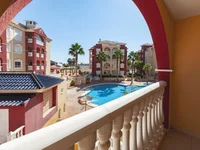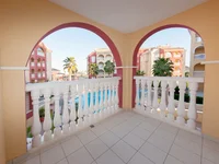 Apartment in Los Alcázares with 2 bedrooms, 2 bathrooms, kitchen open to the living room, fitted wardrobes. Beautiful Mediterranean-style residential complex within walking distance of the beach with three community pools and parking space.