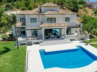 Odkryj Casa Flores, ekskluzywną willę w Monte Mayor, która łączy urok tradycyjnego stylu andaluzji z współczesnym dotykiem. Zbudowany w 2007 roku obiekt ten wyróżnia się doskonałą lokalizacją, oferując zapierające dech w piersiach, niezakłócone widoki na góry Sierra Bermeja i Morze Śródziemne. Jego konstrukcja jest stworzona, aby zmaksymalizować prywatność i spokój, z przestronnym ogrodem, tarasami i ekologiczną ścianą, która oprawia oszałamiające naturalne otoczenie. Po wejściu, dwupoziomowy korytarz z podwójną klatką schodową i uderzającą ozdobą światła wita. Open-plan salon oferuje duże okna, które łączą się płynnie z głównym tarasem i lśniącym basenem. W pełni wyposażona kuchnia obejmuje część rodzinną i jadalnię, zarówno z dostępem do tarasu na świeżym powietrzu, idealne do podziwiania widoki na ogród. Na parterze znajduje się także pokój gościnny z łazienką i bezpośrednim dostępem do basenu, a także inny pokój odpowiedni jako biuro lub dodatkowa sypialnia. Na piętrze apartament master posiada sklepiony sufit, wbudowane szafy oraz prywatny taras z zapierającym dech w piersiach widokiem. Łazienka posiada łazienkę z wanną, oddzielny prysznic, podwójne umywalki i prywatną WC. Trzy dodatkowe sypialnie uzupełniają ten poziom, dwie dzielą łazienkę i jeden z własną łazienką. Podłoga, zaprojektowana do wielofunkcyjnego użytku, posiada obecnie pokój bilardowy i miejsca przygotowane do instalacji siłowni, spa lub kina domowego, aby odpowiadały Twoim preferencjom. Ponadto obiekt oferuje carport dla trzech pojazdów i przestronny podjazd. Przeżyj luksus, komfort i najbardziej spektakularne widoki w tej pięknej willi. Skontaktuj się z nami teraz, aby zaplanować wizytę i świadkiem niezapomnianego zachodu słońca w Casa Flores!