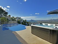 Willa łącząca klasyczną architekturę z technologią i komfortem. Położony w słynnej urbanizacji elity Altea Hills z niezrównanym widokiem na morze. Zbudowany na działce 848 m2, willi 351.43 m2 na trzech poziomach z czterema sypialniami i czterema łazienkami. Przez główne wejście, znajdujące się obok garażu, wchodzimy do salonu, połączonego z kuchnią i jadalnią z kominkiem, TV i sofą, jadalnią z nowoczesnymi szczegółami i dużym salonem o powierzchni 77 m2. Salon posiada duże okna panoramiczne z widokiem na duży taras o powierzchni 53 m2 z otwartym widokiem na Altea, Benidorm, morze i góry. Piętro poniżej, na poziomie -1, to trzy sypialnie, siłownia i pralnia. Główna sypialnia o powierzchni 30 m2, z wanną z hydromasażem, widokiem na morze i własną garderobą. Druga sypialnia jest 22 m2, z budynkiem w szafie i tarasem z tym samym widokiem na morze. Trzecia sypialnia z własną łazienką. W pełni wyposażona siłownia. W pełni wyposażona pralnia o powierzchni 20 m2. Na poziomie basenu, piętro -2, znajdują się: sauna, prysznic i łazienka, podgrzewany basen, strefa rekreacyjna z jacuzzi, barbecue, ogrzewana piwnica wina. Dom posiada windę, garaż i miejsce parkingowe na 3 samochody. Ogród wokół domu na kilku poziomach. Tarasy z przezroczystymi poręczami i oświetleniem tworzą magiczną atmosferę. Materiały i technologie: Growatt Przewodniczący 12 kW energii słonecznej z bateriami, co pozwala na autonomiczne wykorzystanie energii elektrycznej. Podgrzewane podłogi we wszystkich pokojach. Marmur podłogi, maszyny Laufen, Grohe, Somfy, Mitsubishi, Harvia, Miele, NEFF. Ekstremalna willa w Altea Hills, elitarnej dzielnicy mieszkalnej znanej ze spektakularnych widoków, wspaniałych willi i gwarancji pokoju i prywatności. Elitarna urbanizacja wybrzeża Altea Hills to komfortowy, otoczony kompleksem, który zachwyca luksusem, "marzenie rezydenta metropolii", na zboczach gór Sierra Bernia, w stanie chronić prywatność swoich właścicieli. Luksusowe wille z widokiem na morze - z jednej strony, a z drugiej - krajobrazy górskie. Jest domem dla Melia International Hotel, który gości członków hiszpańskiej rodziny królewskiej i gwiazd świata. Również na terytorium urbanizacji istnieje wiele restauracji, korty tenisowe, hale sportowe, SPA, itp. Althea Hills jest z jednej strony - pełna prywatność, z drugiej - bogate życie rozrywkowe. Rezerwacja online jest możliwa, jak również zakup na kredyt z banku na 4- 6% rocznie. Zakup nieruchomości w Hiszpanii, można uzyskać zezwolenie na pobyt. Nasza firma pomaga w wydaniu dokumentu pobytowego wszelkiego rodzaju.