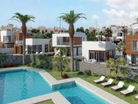 The plot is fenced perimeter with a wall covered in white monolayer to match the façade of the house. It has a pedestrian and vehicle access door. The parking area is finished with grey concrete pavers, followed by an artificial grass area next to the sidewalk with an area of 20 m² approx., and with the terrace paved with floors of the same format and color as the interior.