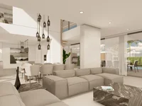 Wewnątrz tych nowoczesnych nieruchomości, na parterze, znajdziesz obszerną przestrzeń dzienną z dużymi francuskimi oknami, które wpuszczają do wnętrz naturalne światło i oferują widok na prywatny basen. Do dyspozycji Gości jest otwarta jadalnia oraz przestronna kuchnia z wyspą. Na parterze znajduje się także dwuosobowa sypialnia z zabudowaną szafą oraz łazienka z kabiną prysznicową. Dodatkowo znajduje się druga łazienka z wydzieloną pralnią.