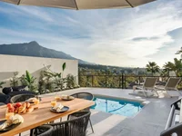 Apartament Adrienne prezentuje luksusowy czterosypialniany apartament z prywatnym basenem i ogrodem, oferujący oszałamiające widoki na morze i góry. Ten odnowiony apartament na parterze to oaza nowoczesnego, paryskiego stylu życia w samym sercu Nueva Andalucia, La Cerquilla. Właściwość ma strategiczną orientację na południe/wschód, zapewniając jasne i nasłonecznione przestrzenie przez cały dzień. Jego unikalny układ obejmuje biuro z połączoną pralnią przy wejściu, sypialnię z łazienką en-suite po prawej stronie, a dalej, przestronną łazienkę i kolejną sypialnię. Sercem domu jest stylowa, otwarta kuchnia i część dzienna, prowadząca bezpośrednio na zewnętrzny taras z jadalnią i leżakami przy prywatnym basenie. Sypialnia główna, z własną łazienką, wychodzi na spokojny ogród i oferuje oszałamiające widoki na morze i góry. Ostatnio odnowiony z meblami wykonanymi na zamówienie i marmurowymi umywalkami, ten apartament odzwierciedla wyrafinowany gust i dbałość o szczegóły. Jego prywatny ogród i basen, w połączeniu z dostępem do dwóch basenów wspólnotowych, zapewniają doskonałe połączenie intymności i życia społecznego. Zlokalizowana w zamkniętej urbanizacji Los Belvederes, ta nieruchomość jest położona w ekskluzywnej dzielnicy Nueva Andalucia, otoczonej prestiżowymi polami golfowymi, takimi jak Los Naranjos Golf, Aloha Golf i Las Brisas Golf. Właściwość obejmuje również miejsce parkingowe w garażu, pomieszczenie gospodarcze i jest w pełni umeblowana w spersonalizowanym stylu paryskim.