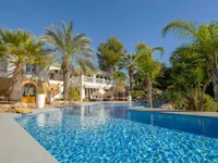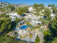 Willa z czterema sypialniami zwrócona na południe w fantastycznej lokalizacji z widokiem na pole golfowe San Jaime w Benissie i na morze. Główny poziom przestrzeni mieszkalnej przy wejściu do willi składa się z atrakcyjnego korytarza prowadzącego do jasnej i przestronnej recepcji, otwartej kuchni z drzwiami prowadzącymi do zadaszonej przestrzeni zewnętrznej z jadalnią i miejscem relaksu, głównej sypialni z garderobą i dużej łazienki z prysznicem, dwóch pokoi dwuosobowych, rodzinnej łazienki, pomieszczenia użytkowe i duży schowek obecnie używany jako sypialnia. Schody z tarasu na zewnątrz prowadzą do pokładu basenowego i pokoju gościnnego z barem / bawialnia i jadalnia / pokój nauki. Istnieje wiele przestrzeni na zewnątrz, w tym piękny basen nieskończoność, kilka opalania i rozrywki / barbecue, plac zabaw i Bali Hut. Obiekt jest dogodnie położony w pobliżu supermarketu Pepe La Sal, barów i restauracji, a klub golfowy Vista Ifach znajduje się zaledwie kilka kroków od hotelu.