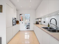 Apartament posiada dwie duże sypialnie, obie z łazienkami, a także osobne pomieszczenie gospodarcze dla dodatkowej wygody. Dodatkowe udogodnienia obejmują prywatne miejsce parkingowe pod ziemią, windę w budynku i dostęp do pięknego wspólnego basenu położonego w bujnych, dojrzałych ogrodach.