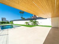 Wybudowana w 2023 roku willa oferuje łącznie około 750 m² powierzchni mieszkalnej. Składa się z 5 sypialni i 5 łazienek. Otwarta przestrzeń dzienna płynnie integruje salon, jadalnię i w pełni wyposażoną kuchnię, połączone z ogrodem dużymi oknami od podłogi do sufitu, które wpuszczają do wnętrza mnóstwo naturalnego światła. Na parterze znajduje się sypialnia gościnna, a na piętrze trzy sypialnie z łazienkami, wykończone wysokiej jakości materiałami. Na poziomie piwnicy znajduje się prywatna strefa wellness z sauną, wielofunkcyjna sala nadająca się na siłownię, kino lub apartament gościnny, a także w pełni wyposażona łazienka i pomieszczenie gospodarcze. Ogrzewanie podłogowe, klimatyzacja i eleganckie wykończenia zapewniają idealne połączenie komfortu i nowoczesnego stylu.