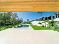 Zewnętrzna część willi została zaprojektowana z myślą o komforcie, elegancji i relaksie. Nieruchomość, położona na działce o powierzchni około 800 m², oferuje prywatny basen otoczony ogrodami krajobrazowymi, przestronne tarasy oraz strefę relaksu, idealną do opalania się lub spożywania posiłków na świeżym powietrzu. Solarium na dachu o powierzchni około 120 m² posiada jacuzzi i oferuje panoramiczny widok na morze. Willa dysponuje również prywatnym garażem z windą prowadzącą na parter, a także praktycznymi schowkami na zewnątrz.