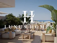 Niesamowity luksusowy penthouse z pięknym widokiem na morze, basenem i tarasem na dachu, położony blisko brzegu.