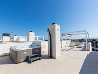 Penthouse apartment located in the prestigious and modern Amanecer Deluxe residential complex, in a quiet area known for its contemporary architecture and excellent location. The property has a built area of 75 m² and consists of 2 spacious bedrooms, 2 full bathrooms with underfloor heating, a fully equipped open-plan kitchen, and a bright living-dining area with access to a terrace. The apartment is sold as shown in the photographs and is ready to move in. On the rooftop, there is an impressive 60 m² solarium with jacuzzi, perfect for relaxing, sunbathing, and enjoying open views. The property also includes an underground parking space and a storage room. The gated community offers excellent communal facilities, including a swimming pool, barbecue area, children’s playground, gym, and sauna. All essential services such as supermarkets, sports centers, restaurants, and leisure areas are nearby. Located just a few minutes from the beaches of Orihuela Costa, within walking distance to shops, bars, and restaurants, and in a strategic area with planned infrastructure developments that will improve access to the beaches and enhance the property’s value. An ideal option as a permanent home, holiday property, or investment. Contact us today to arrange a viewing.