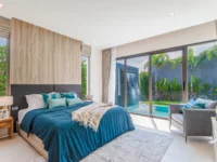 Cost from 447 thousand $Villa area: 331 m & sup2;Floor - 2Extra Roof Area3 bedrooms and 3 bathrooms Modern villas with a swimming pool are located in the center of the northern coast of Phuket - it is the most prestigious residential area of the island. This is a complex of 29 modern two-story villas with a personal pool. Stylish villas are characterized by an exquisite interior design using natural wood, competent layout and high quality materials.On the ground floor there is a spacious living room with high ceilings, panoramic glazing and pool views, a comfortable kitchen with built-in appliances, a dining area with a large wooden table, as well as a master bedroom with a dressing room, bathroom and waterfall view.The second floor is occupied by two bedrooms with bathrooms, a large outdoor terrace with mountain views ( with a separate entrance from the ) parking, a study.Outside you will find a personal pool of 9x3 meters with a waterfall surrounded by tropical greenery, a sun terrace and covered parking for 2 cars. On the territory:24 hour security and receptionRestaurant Gym and spa The first phase has already been completed in almost the entire sold out, only 1 villa left. In the second phase there are still offers, so you can manage to choose both the area and the layout and book at the best price! For details, write to the direct!
