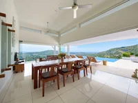 Go through the majestic teak doors to a stone path curling through lush tropical gardens. Climb the stairs to the bright entrance hall decorated with mesmerising works of art. The heart of the villa opens with an open living room, dining room and kitchen, smoothly turning onto the pool terrace.
