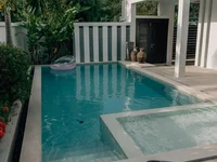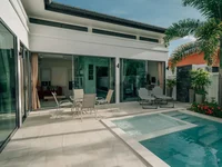 This modern oriental-style 3-bedroom pool villa offers a peaceful tropical retreat in a quie…