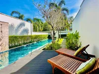 The complex consists of 26 two-story apartments, each with its own garden and swimming pool. 3 and 4 bedroom units with an area of up to 300 sq.m. are available. High walls have been built around the houses for maximum privacy. Just a 5-minute walk to Bang Tao North Beach. All apartments offer views of the pool, mountains and garden.