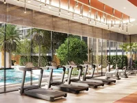 Lobby, pool, rooftop relaxation area, coworking space, gym.