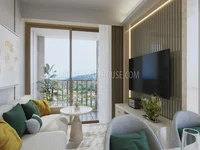 Mieszkanie jest na przestronnej stronie, z dużą ilością miejsca. Istnieje chodnik w szafie, która łączy sypialnię i łazienkę. Istnieje wiele miejsca w salonie i balkon, który pozwala cieszyć się wspaniały widok na zielone wzgórza, boisko do golfa i domy Bang Tao.
