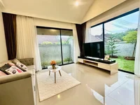 2-Bedroom House for Sale in Huay Yai - This 2-bedroom, 2-bathroom house is set on a 230.8 SQM land plot with a usable area of 126 SQM. Fully furnished and move-in ready, the home features a spacious living area complete with a comfortable sofa, TV, and dining table. The built-in European kitchen is equipped with a gas hob and oven—ideal for home cooking. Both bedrooms include built-in wardrobes, while the outdoor space offers a cozy garden area, perfect for relaxing or entertaining.