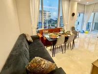 Umeblowany apartament z jedną sypialnią (1+1) o powierzchni 68 m², na wysokim piętrze, z widokiem na góry i basen.