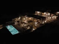 Dom niezależny od sieci elektrycznej jest wyposażony w 40 paneli słonecznych, system akumulatorów o mocy 45 kW, falownik o mocy 26 kW oraz system zbierania wody deszczowej. Naturalne kamienne ściany, elementy z drewna cedrowego i ręcznie wykonane meble łączą autentyczność z estetyką.
