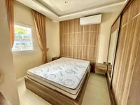 This 3 room apartment for sale in Alanya is located in the quiet and green district of Kargıcak, inside the Stay Suit complex. With a total area of 81 m², the apartment includes two bedrooms, a spacious living area with an open kitchen, and a fully glazed balcony usable year-round.